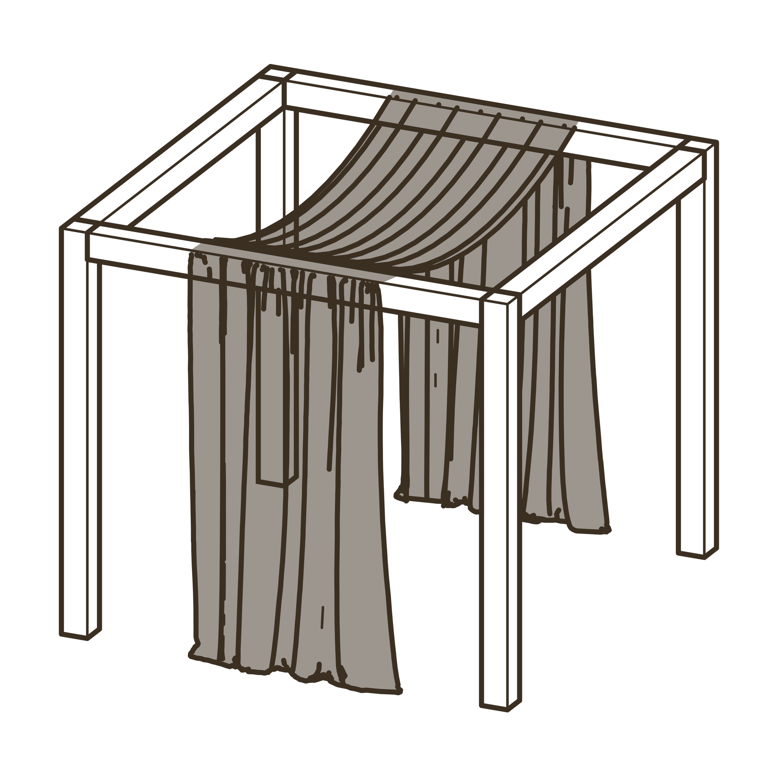 Our shade canopy provides sun protection while maintaining an open, airy feel. Though not waterproof, it can provide light rain coverage.