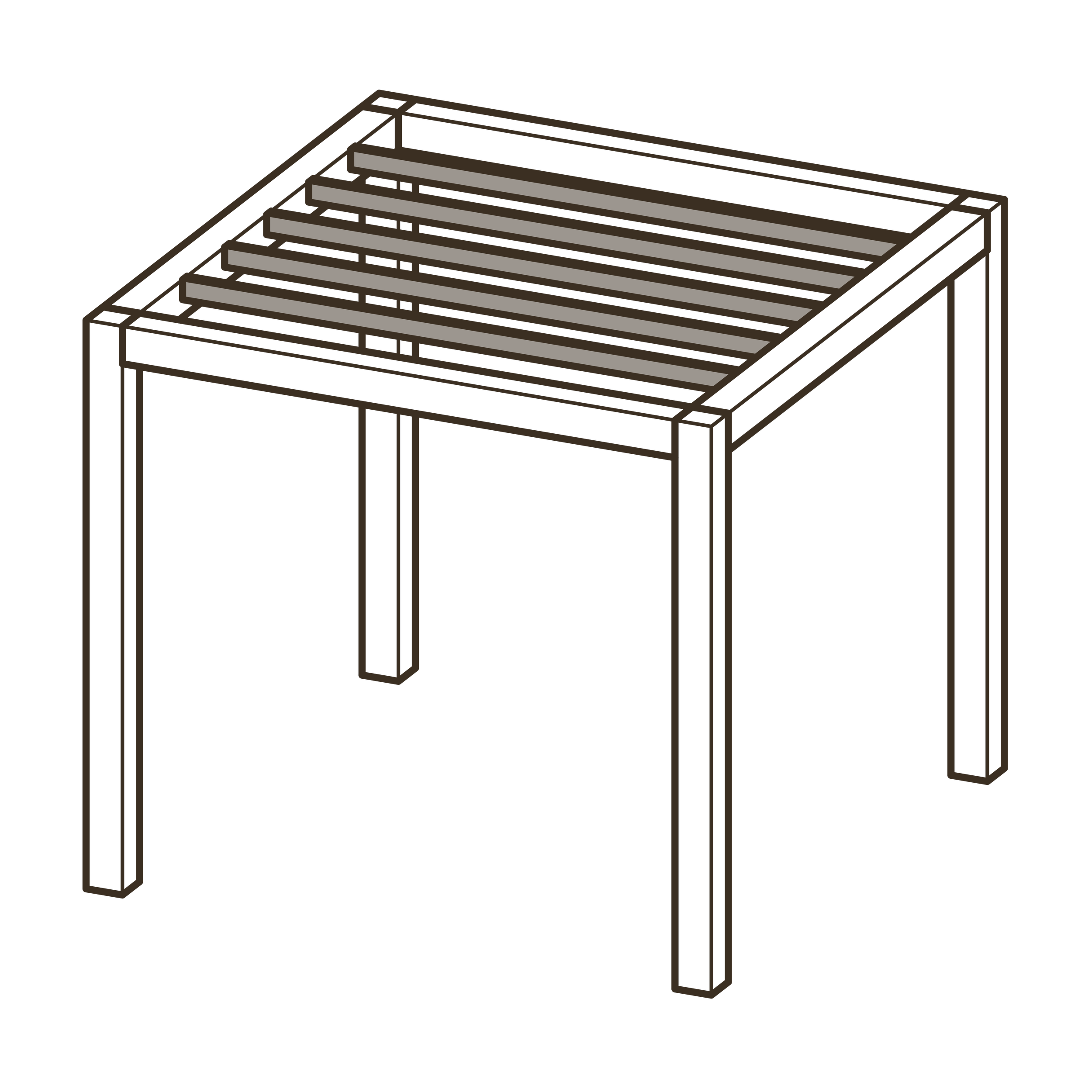 Our proprietary pergola system (Patent Pending) assembles quickly with lightweight parts that lock securely in place. No holes, heavy anchors or complicated tools required. It’s that simple.