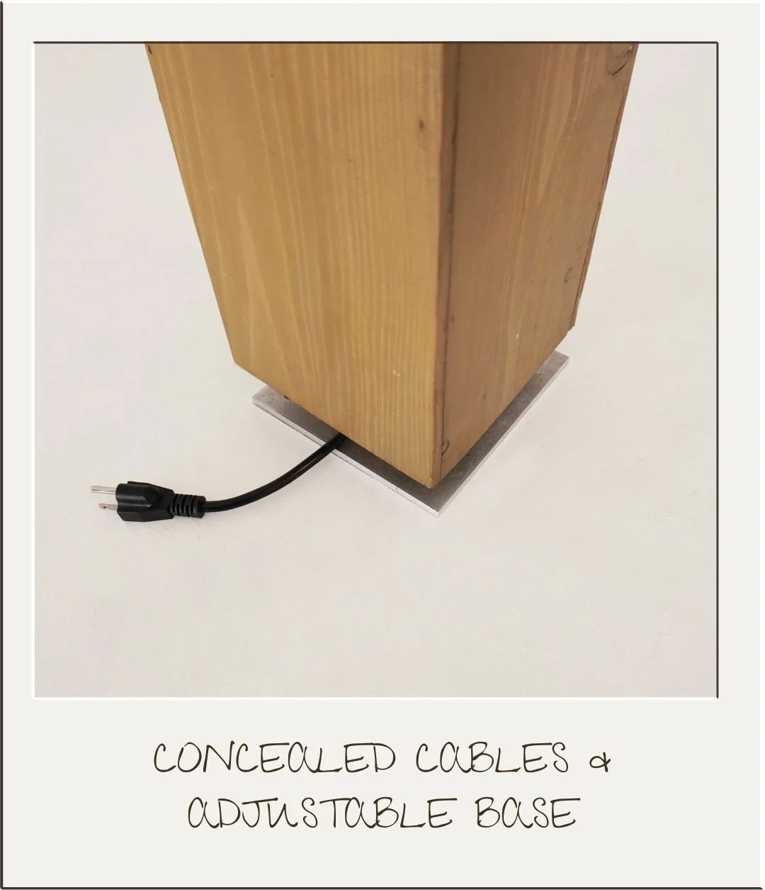 The height-adjustable base adapts to surface variations for a stable installation. Built-in channels allow you to conceal wiring inside the posts for a clean look (cables not included).